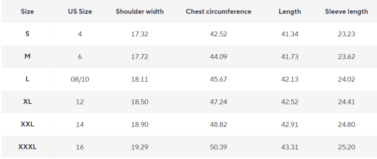 Use these to compare with a coat you already own.