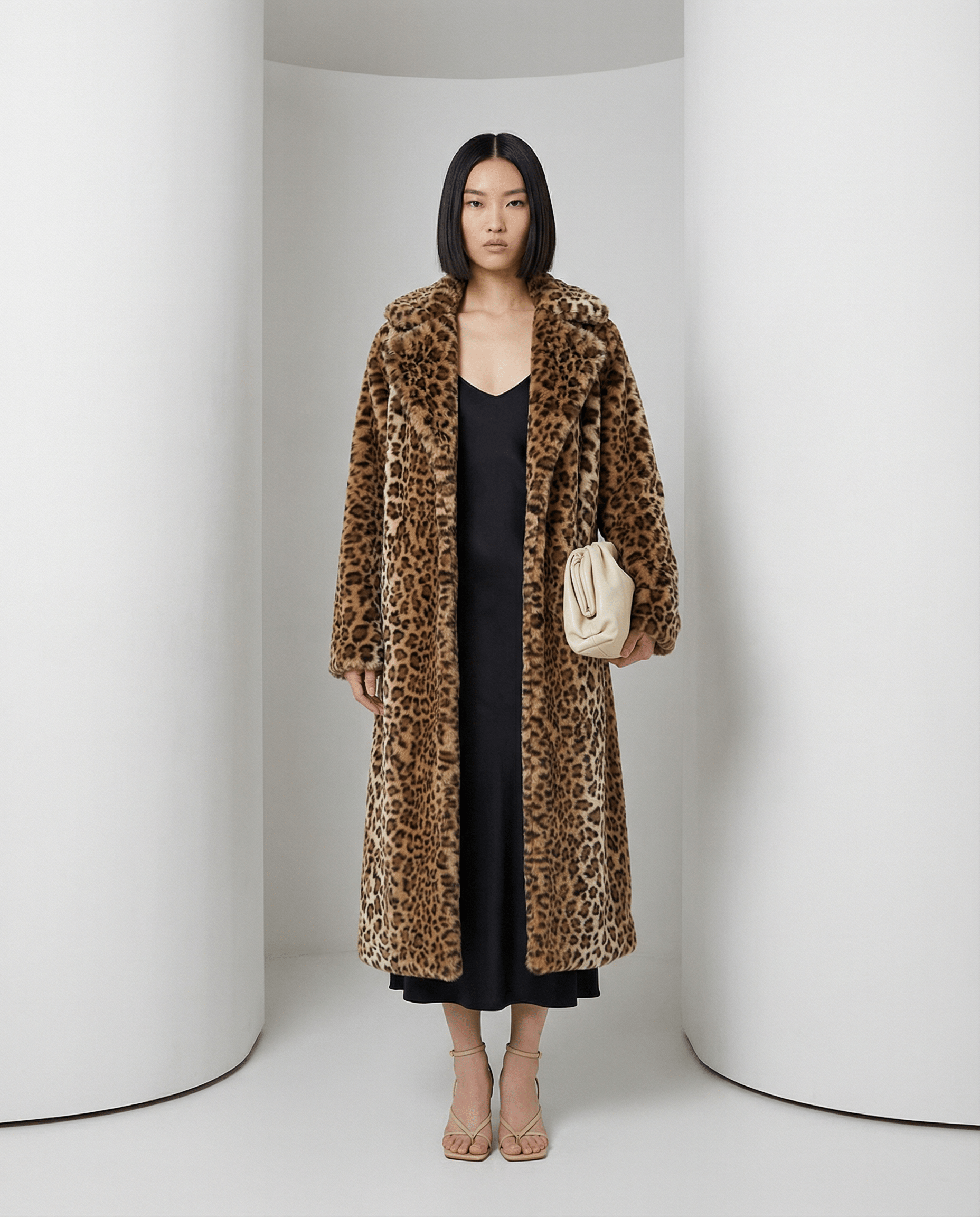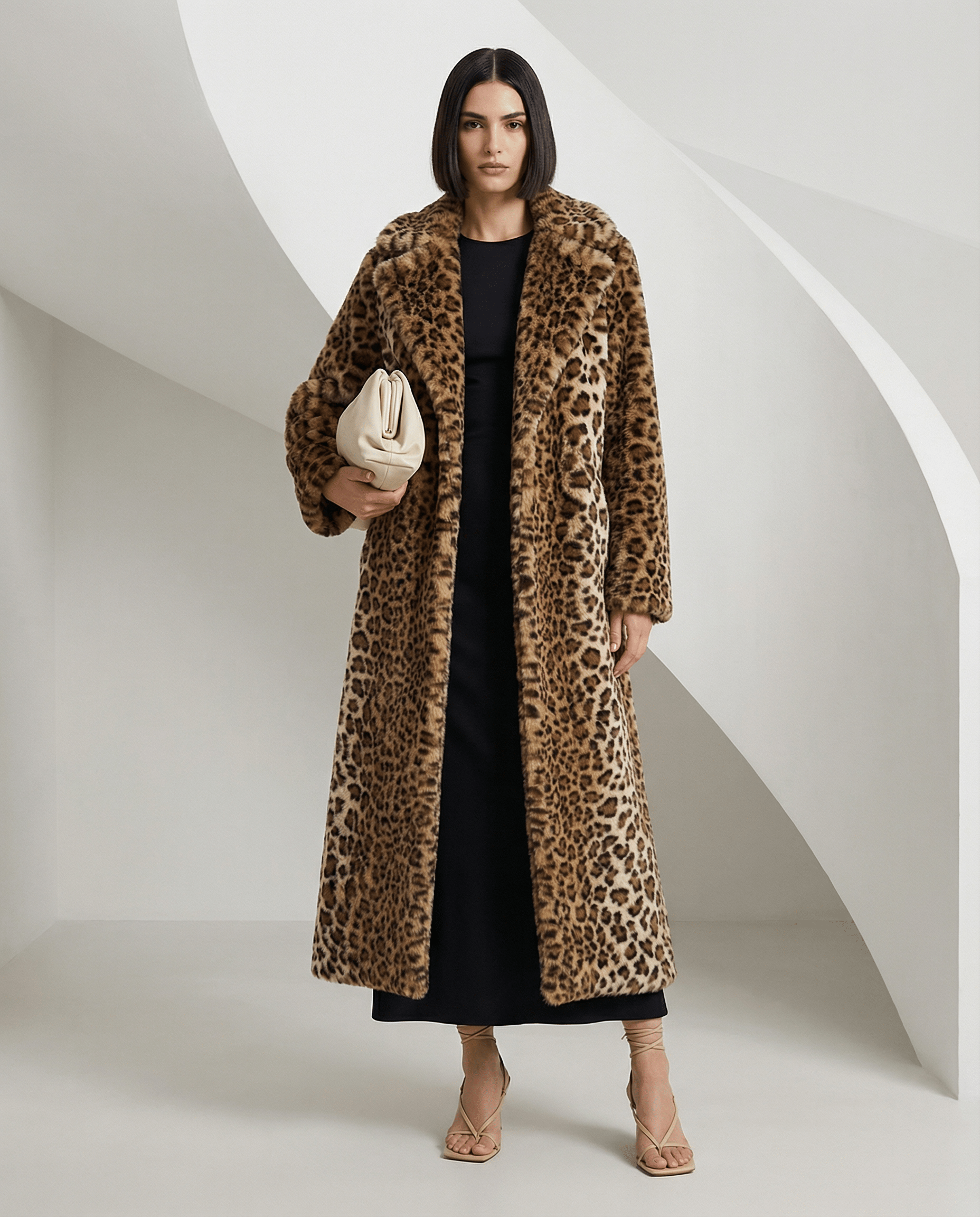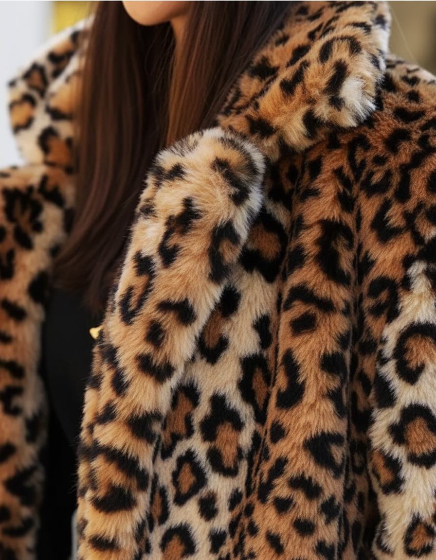 Aurelia is the leopard coat you see in films and on moodboards, minus the guilt. Full-length, warm and softly structured, she gives you fur-level drama while staying 100% faux-fur. When you want to be noticed without saying a word, Aurelia does the talking.