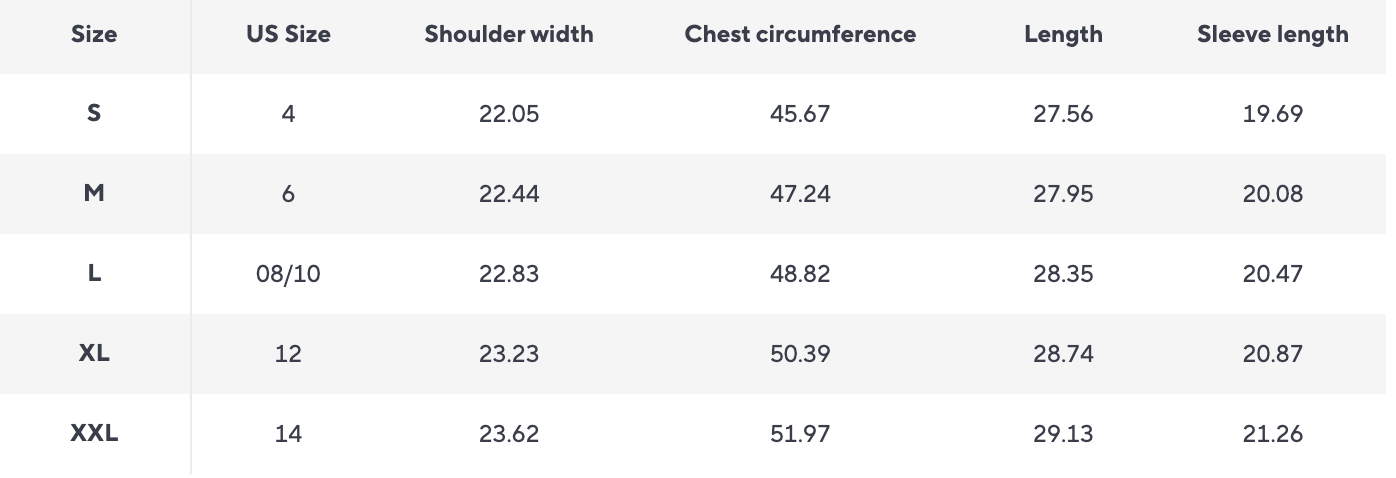 - Lining: smooth woven lining that moves easily over layers (polyester blend)