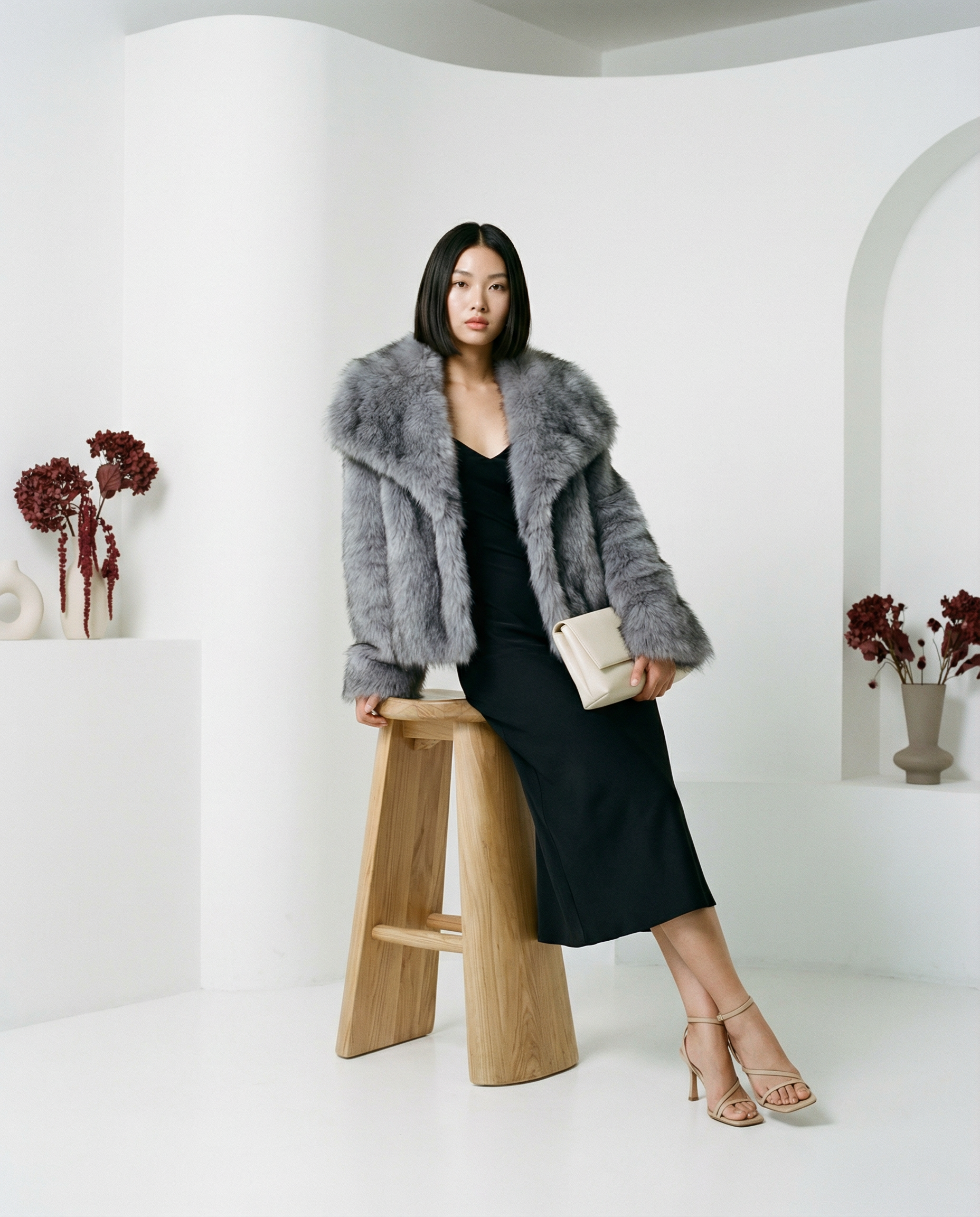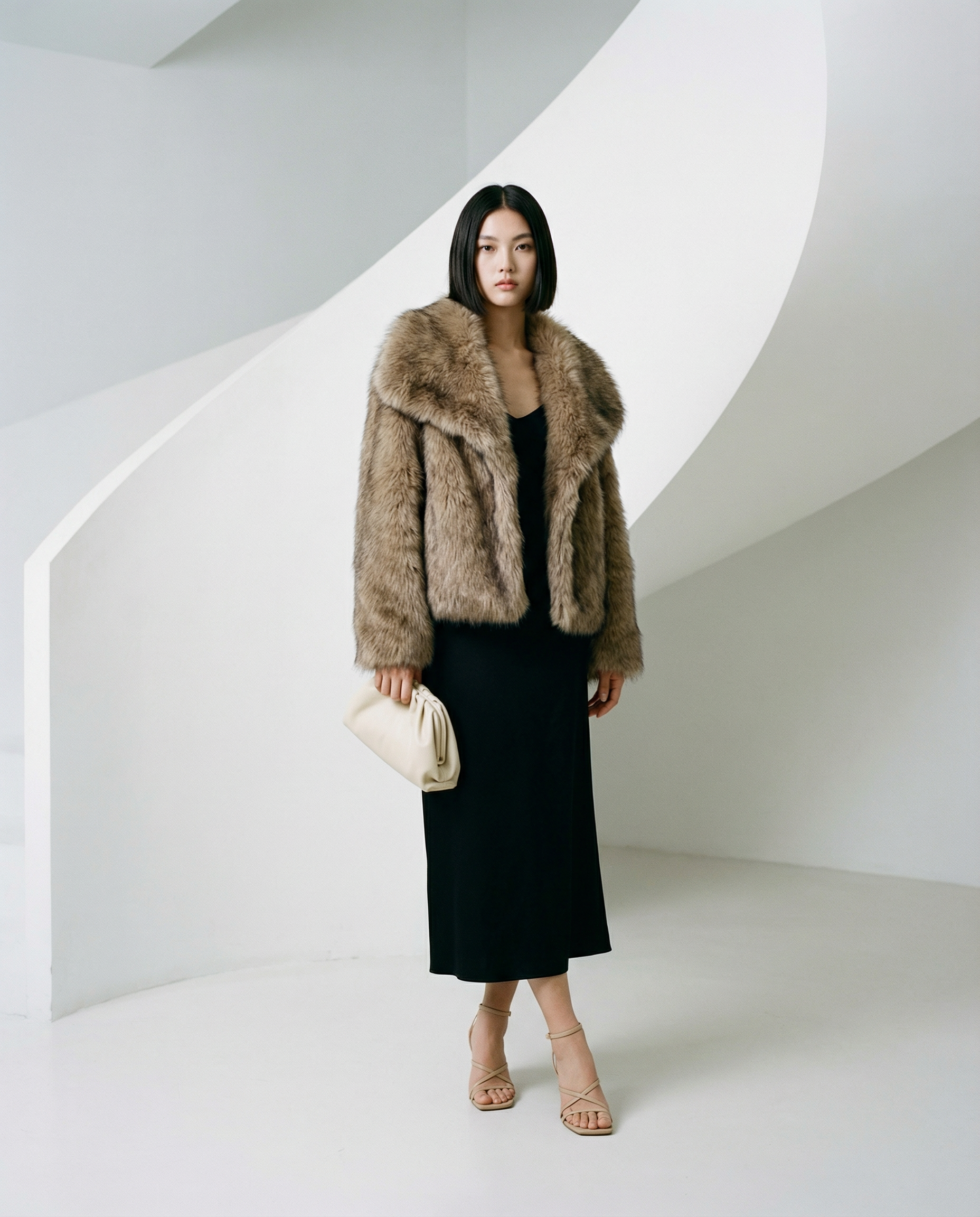 Neriah is the “first faux-fur” people wish they’d bought sooner. Soft faux-fur, a gentle volume and easy length make her ridiculously wearable over knits, jeans or slip dresses. She’s the piece you end up grabbing most often because she just works.